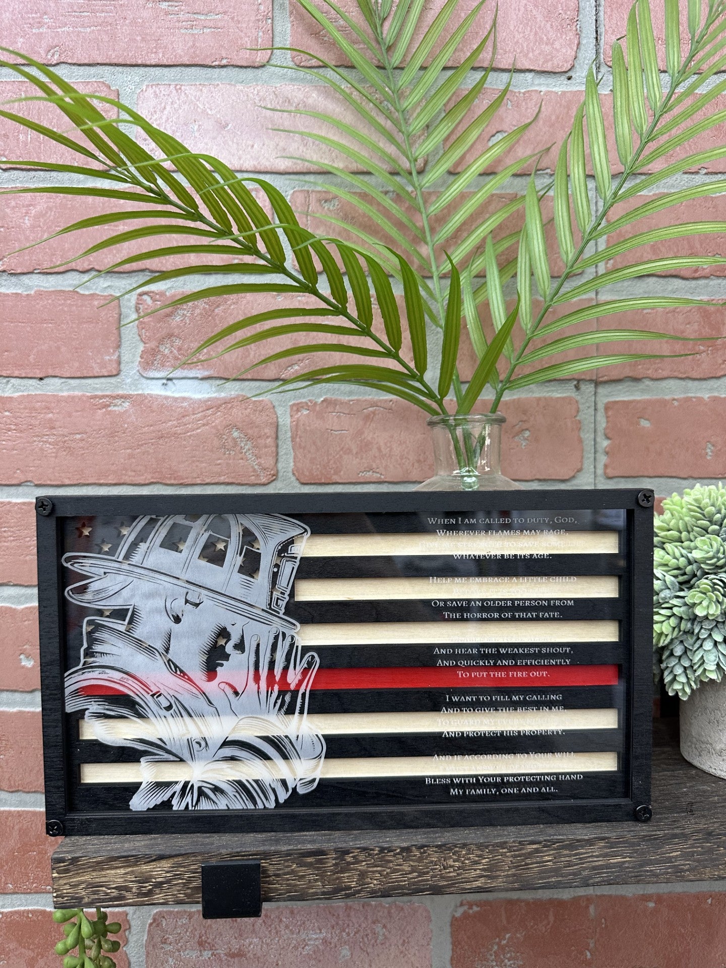 Show your respect and support with our Firefighter Prayer Flags, crafted on wood and finished with durable acrylic for a lasting tribute. Each flag features a heartfelt firefighter prayer, making it a meaningful piece for display at home, in the station, or as a gift for a loved one.