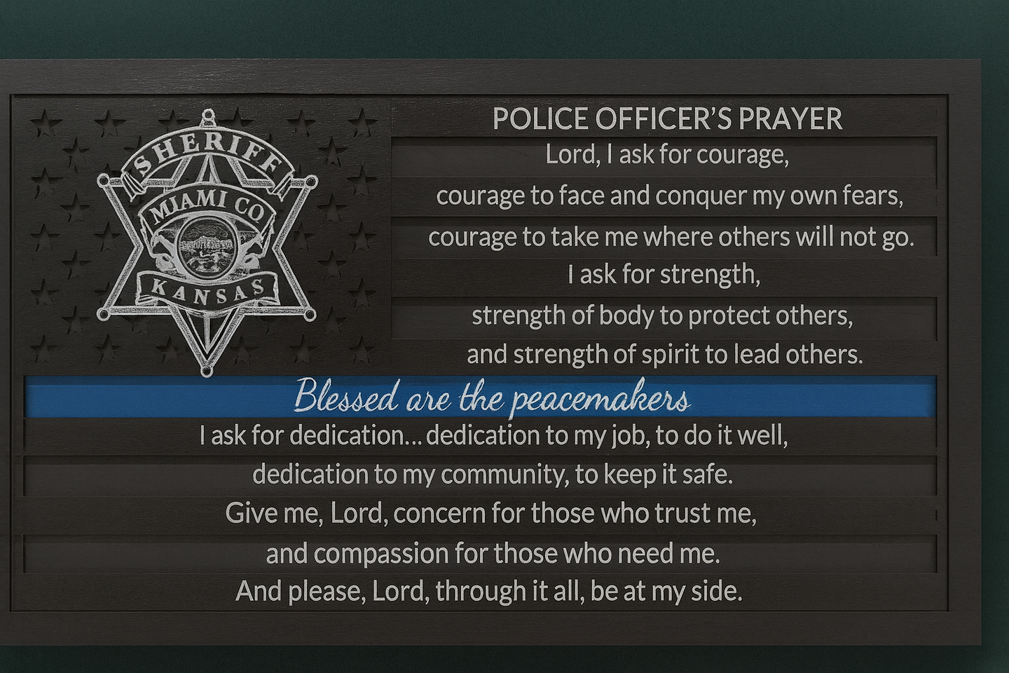 Show your support and appreciation with our Police Officer Prayer Flags, crafted on wood and finished with durable acrylic. Each flag features a heartfelt prayer for police officers, making it a meaningful piece for display at home, in the office, or as a thoughtful gift.